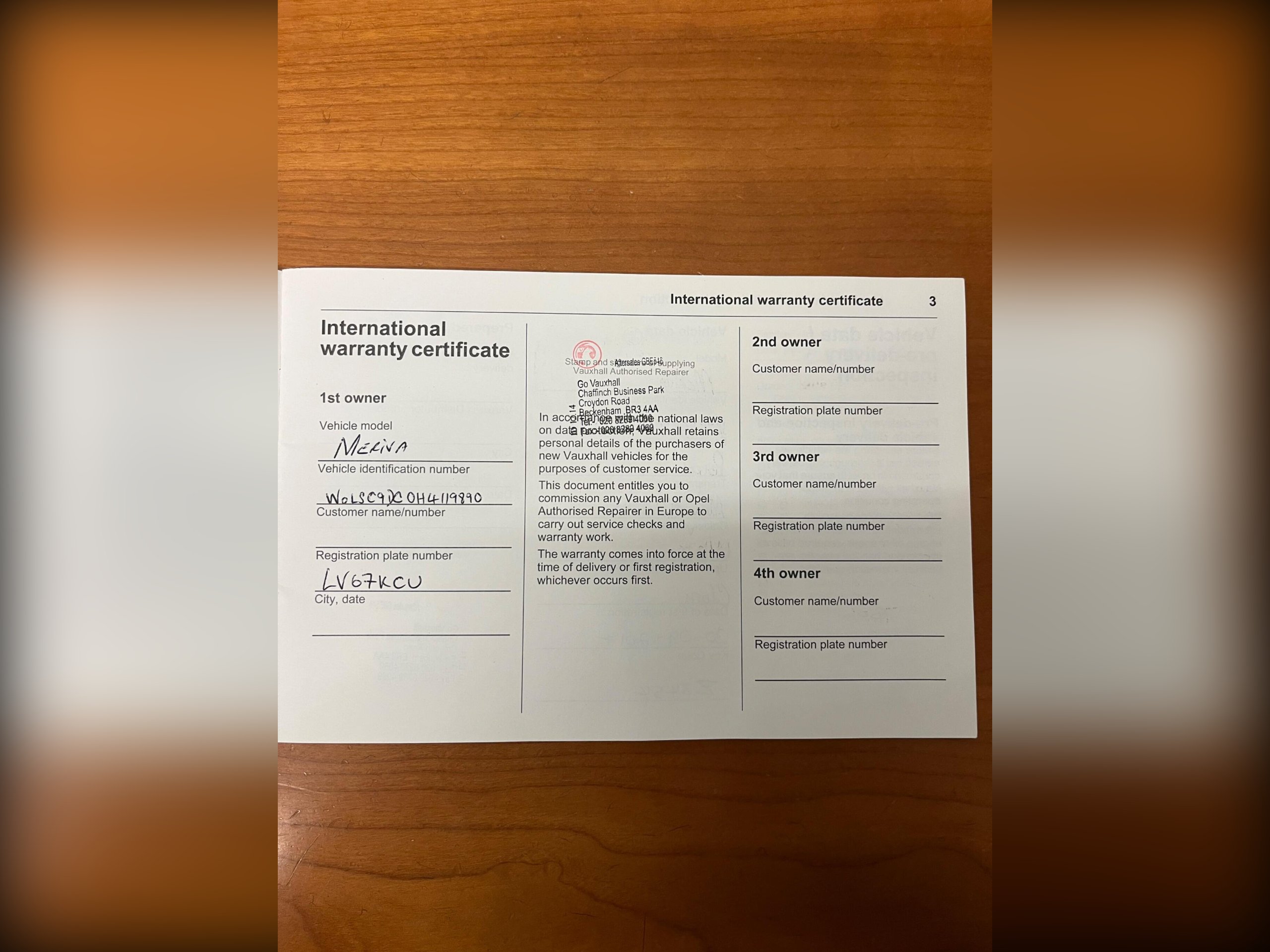 - VIN - Visible Vehicle Identification Number